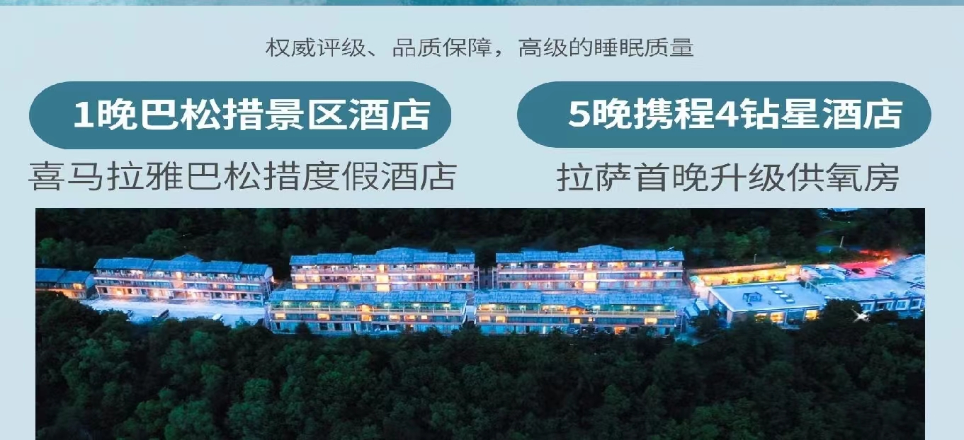 【轻奢酒店】1 晚巴松措景区酒店+5 晚携程 4 钻星级酒店(拉萨首晚升级供氧房)